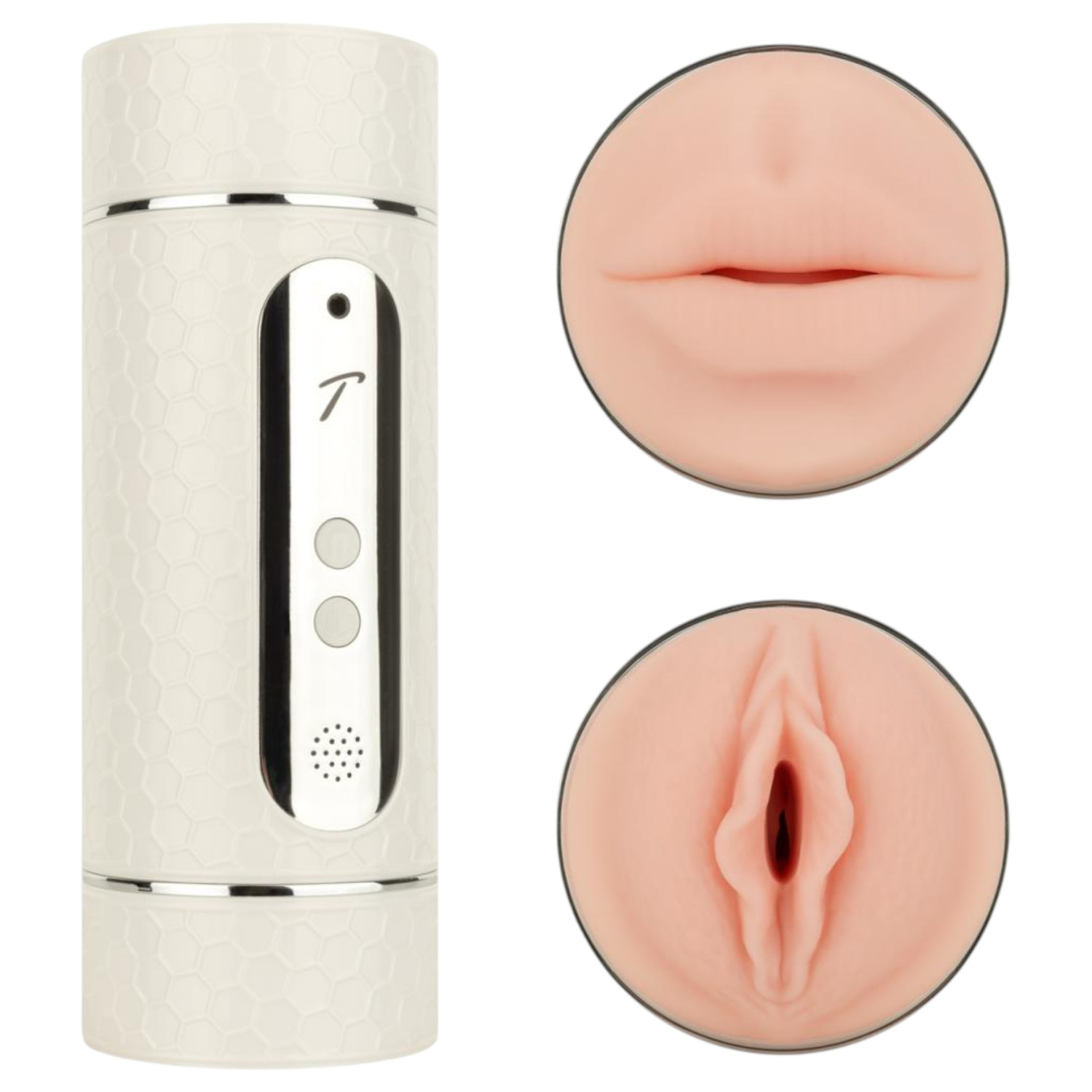 Teazers - hang vezérlésű száj- és punci maszturbátor (fehér)