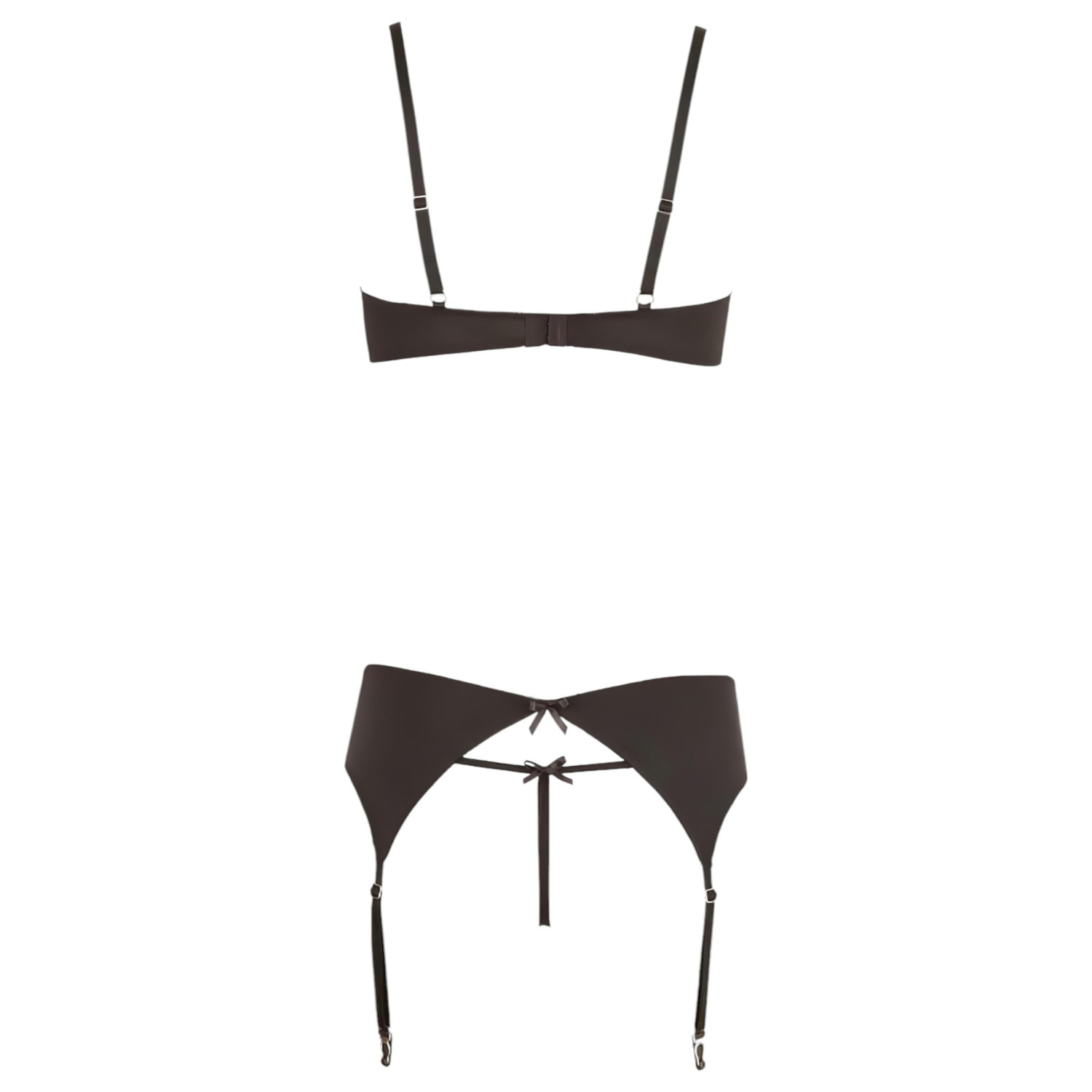 Vedd fel az állítható pántos mellemelőt, amely kiemeli és megemeli a kebleket. Egészítsd ki a szettet a nyitott tangával, majd rögzítsd a harisnyatartót a kedvenc harisnyáddal. Azonnal érezni fogod a különleges, érzéki hatást.