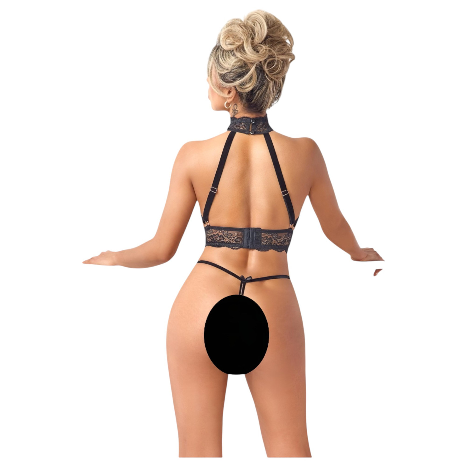 Ez a szexi szett a puha csipke, a bársony pántok és a rózsaarany láncok kombinációjával nyújt egyszerre merész és kifinomult megjelenést. Tökéletes választás, ha szeretnéd felforrósítani az éjszakát és érzékien elcsábítani partnered.