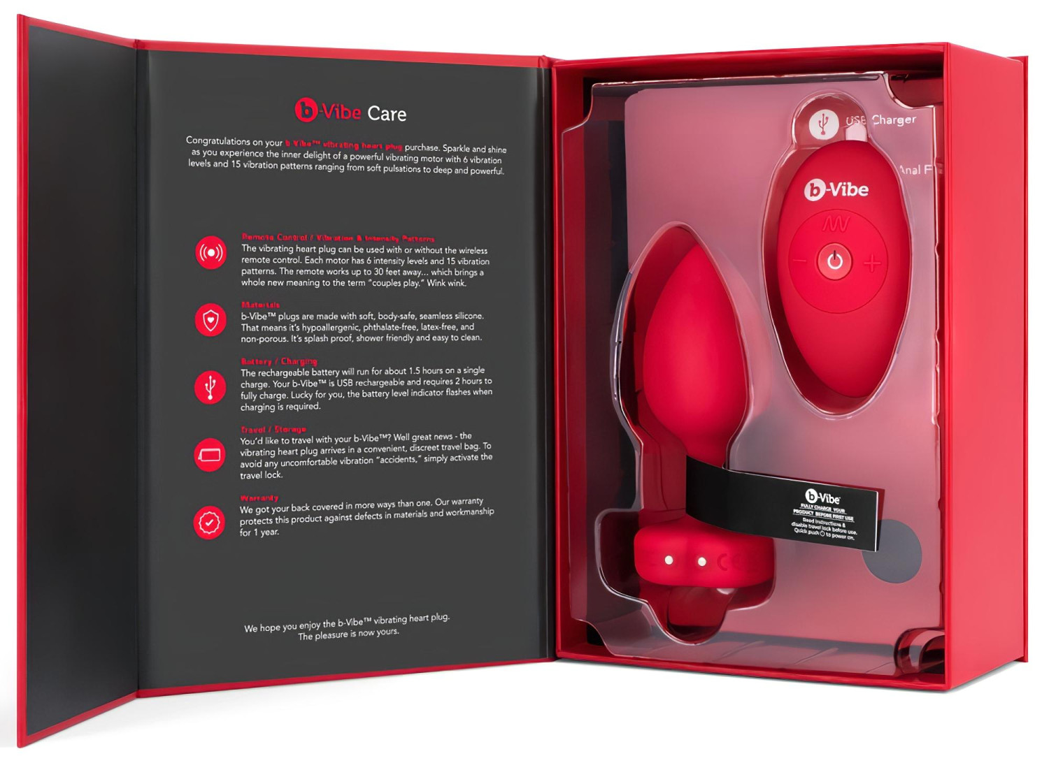 b-vibe heart - akkus, rádiós anál vibrátor (piros)