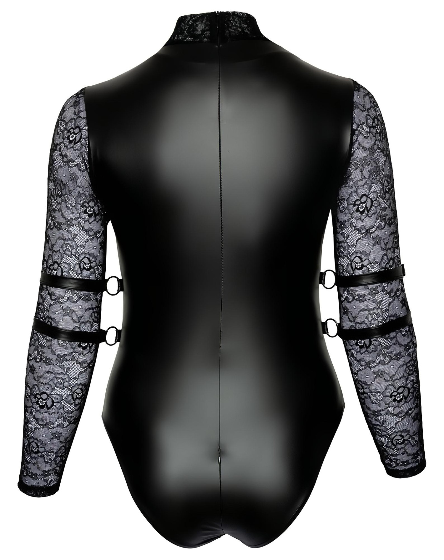 Cottelli Bondage Plus Size - csipkésujjú body (fekete)