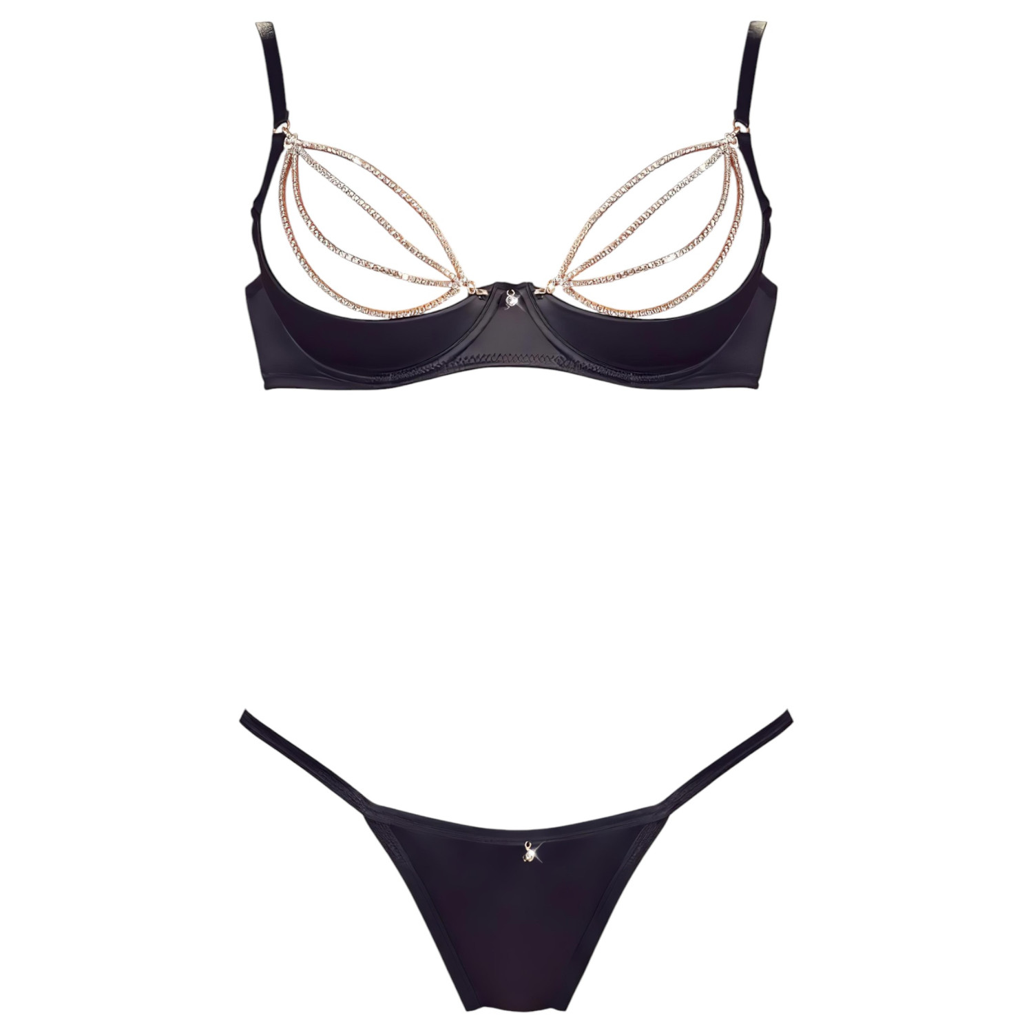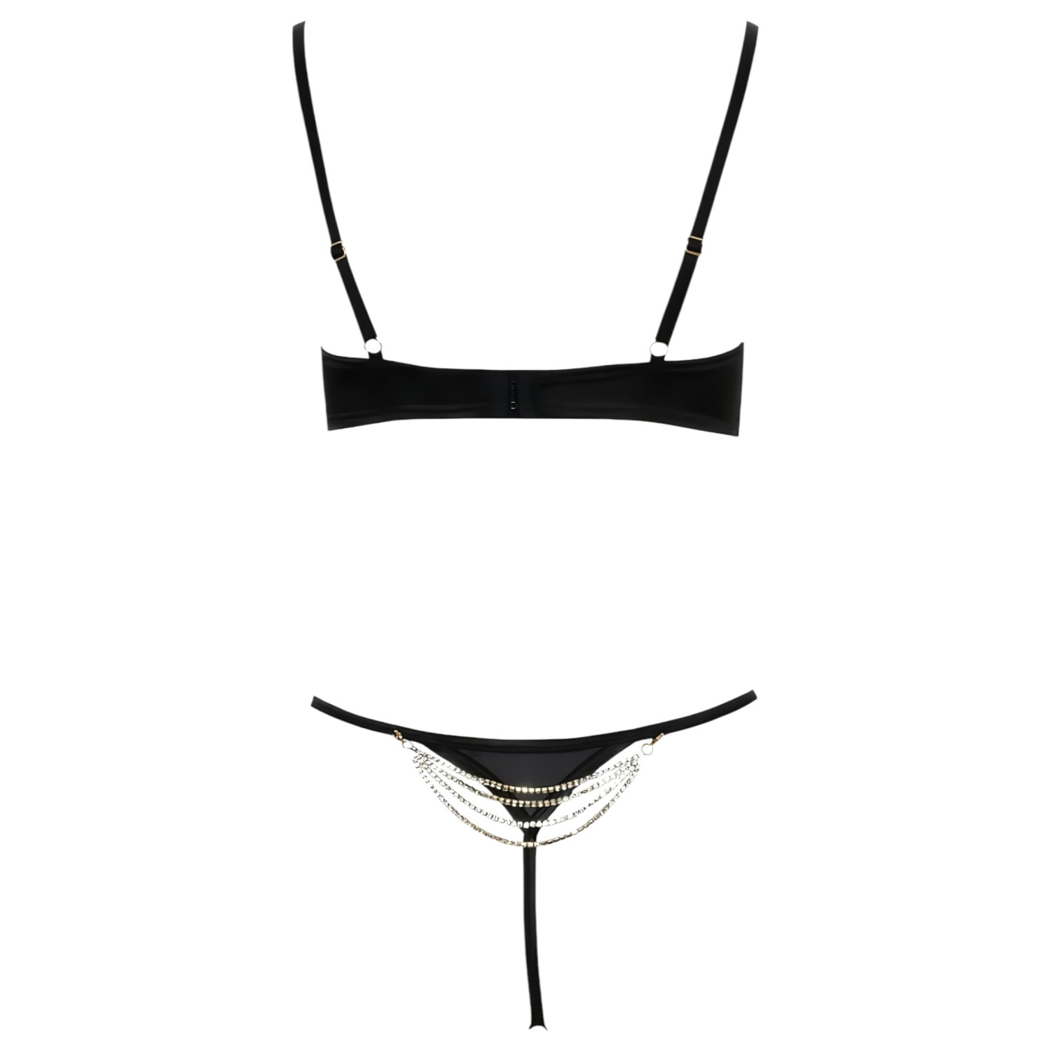 Cottelli - strasszos láncos, szatén mellemelő szett (fekete)