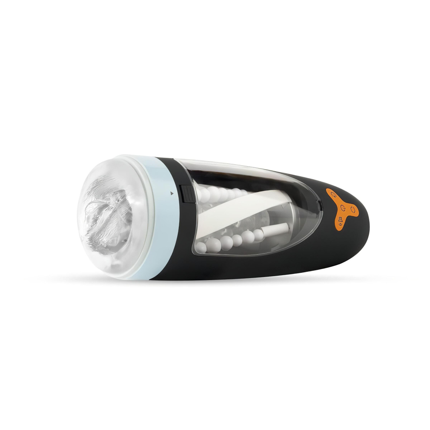 Akkumulátorral felszerelt, a péniszt körbe-körbe masszírozó forgó gyöngyök mellett, kellemes pénisz szívó élménnyel is kényeztető maszturbátor.