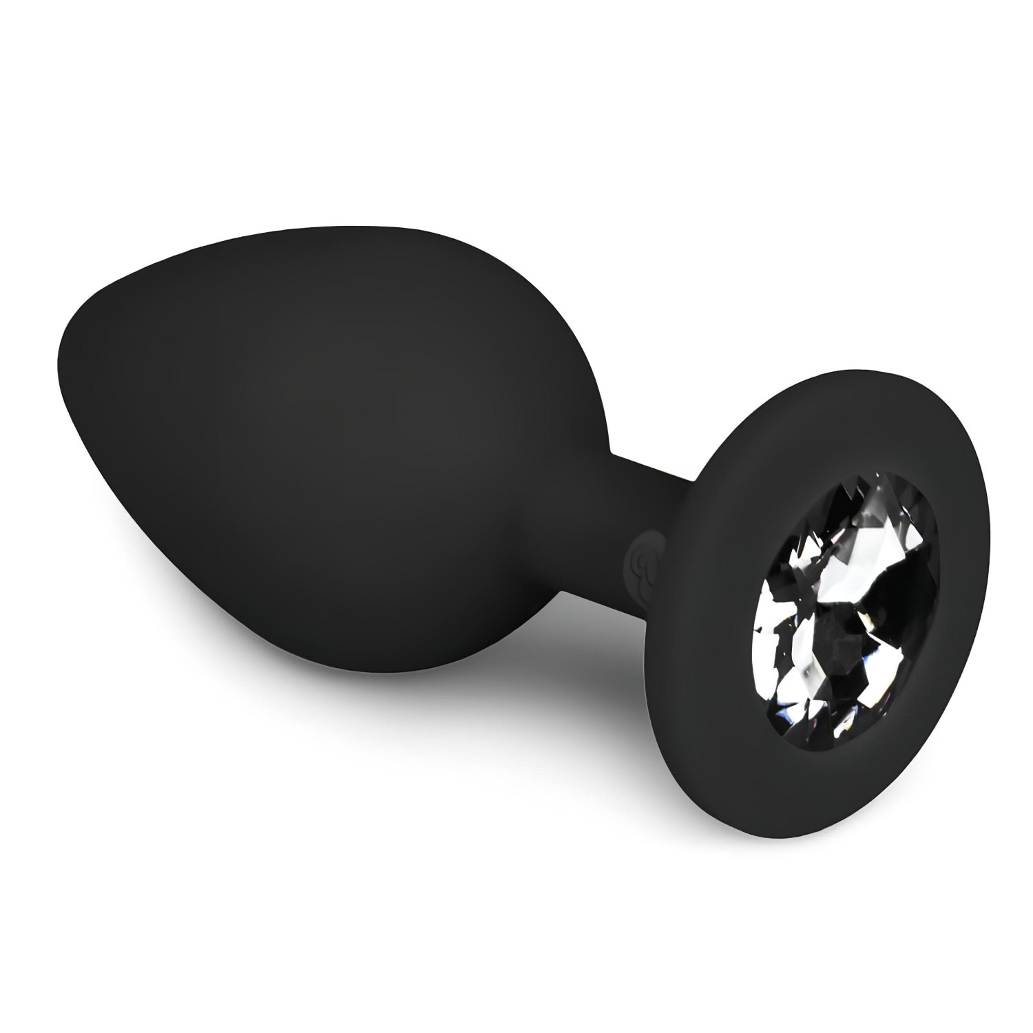 Easytoys Diamond - fehér köves anál plug (közepes) - fekete