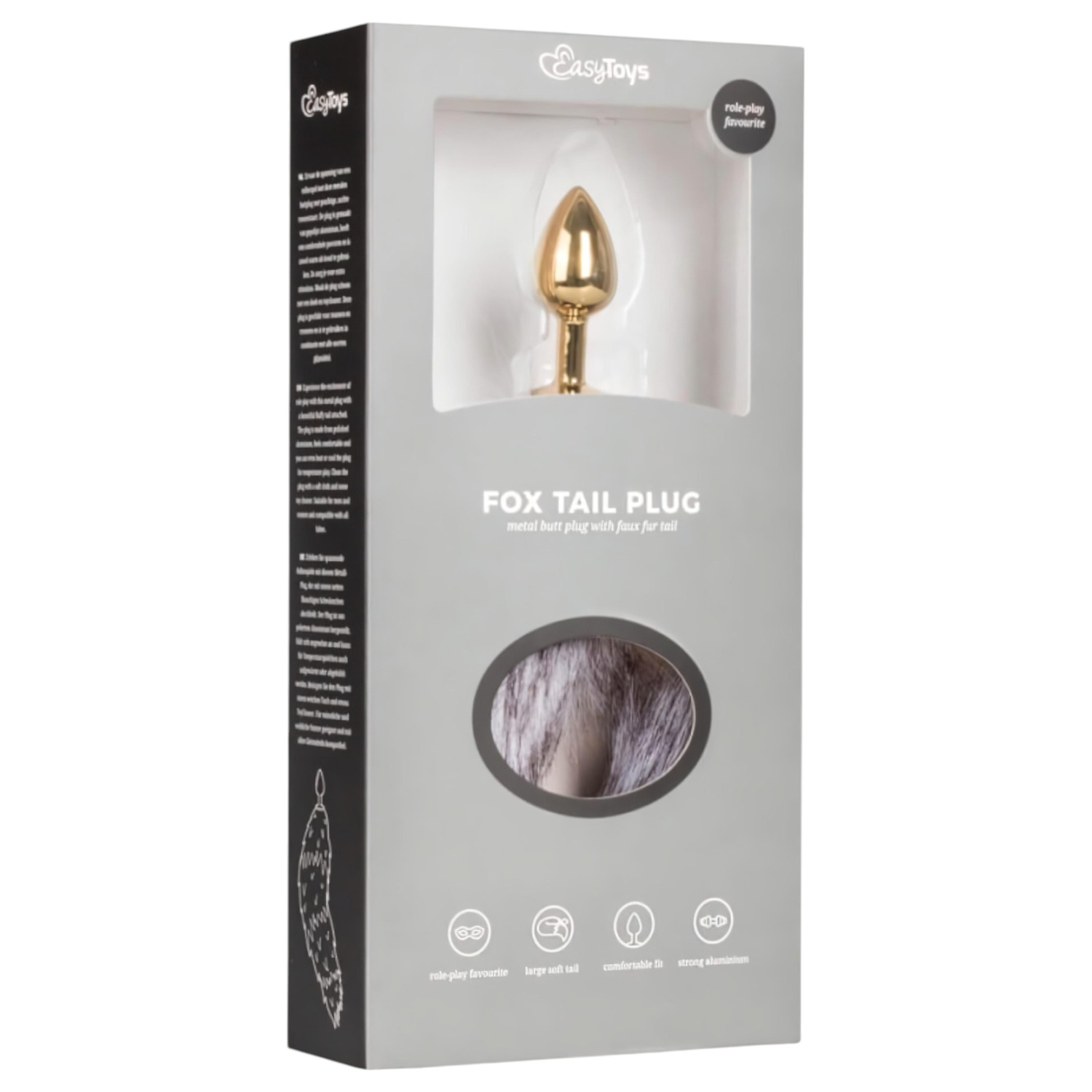 Easytoys Fox NO5 - fém anál plug rókafarokkal (arany-ezüst)