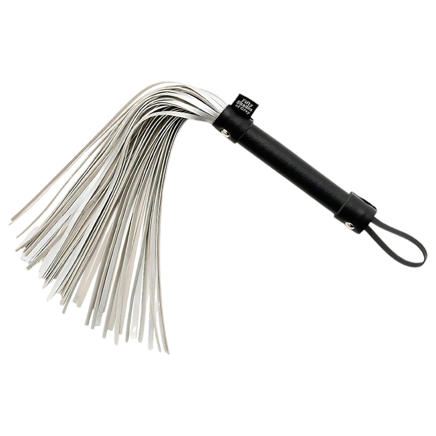Exkluzív korbács A szürke ötven árnyalata kollekcióból! Exkluzív kivitelezésű korbács, puha, ezüst szálakkal, strapabíró, fekete, bőr borításos fa nyéllel és praktikus fogóval.