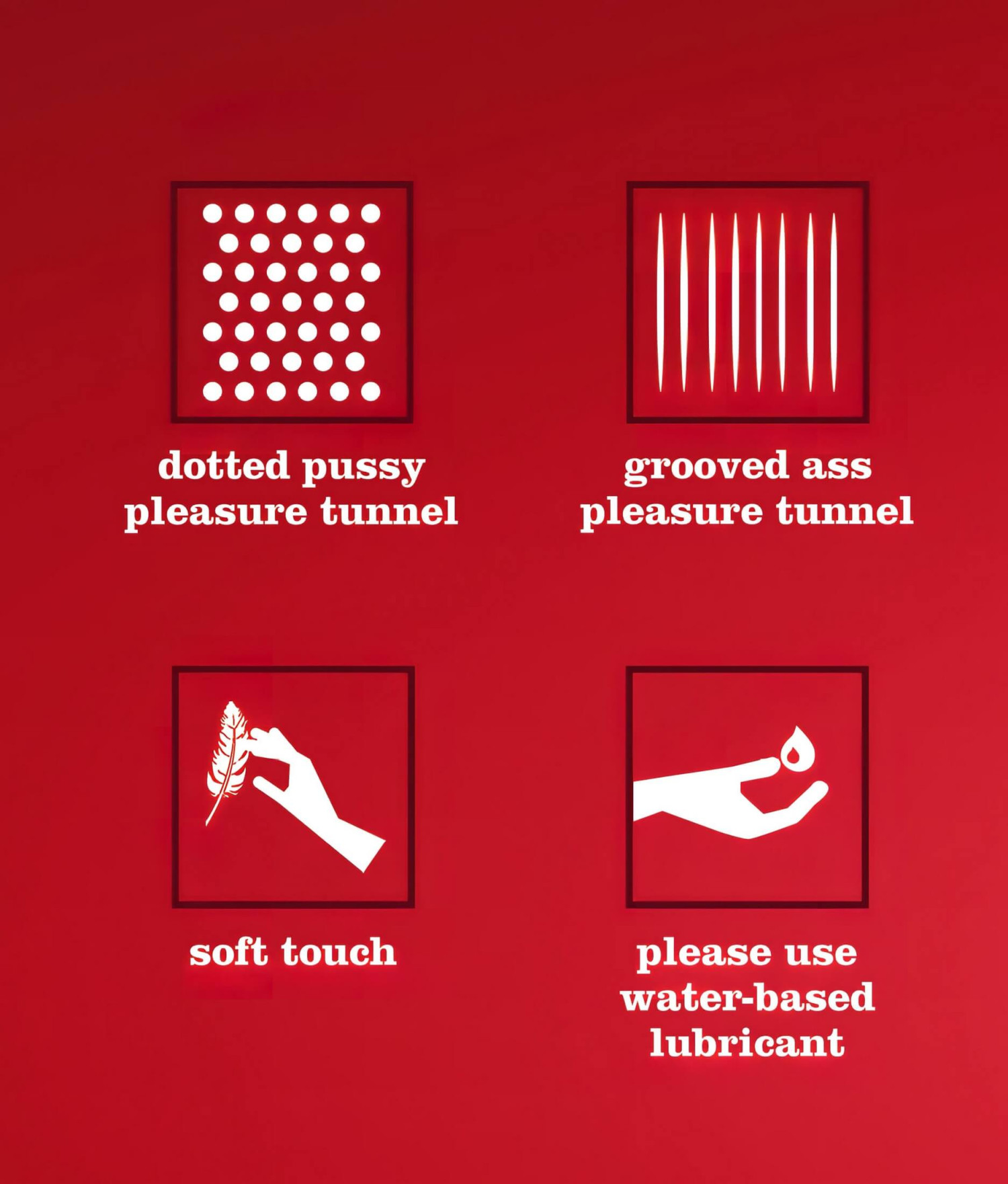 Használat előtt síkosítsd be alaposan a kívánt csatornát, majd élvezd az élethű érzést! A belső nyílások nyitottak, így a csatornákat utána egyszerűen átöblítheted és hagyhatod megszáradni.