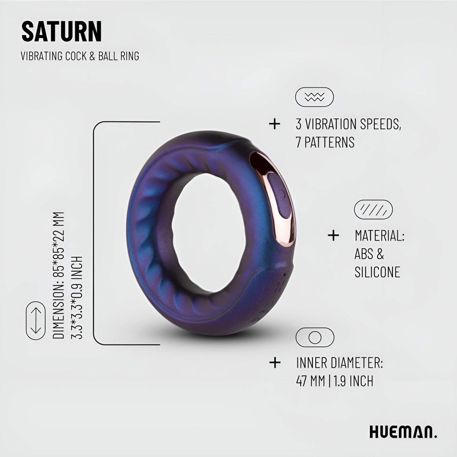 Hueman Saturn - akkus, vízálló vibrációs péniszgyűrű (lila)