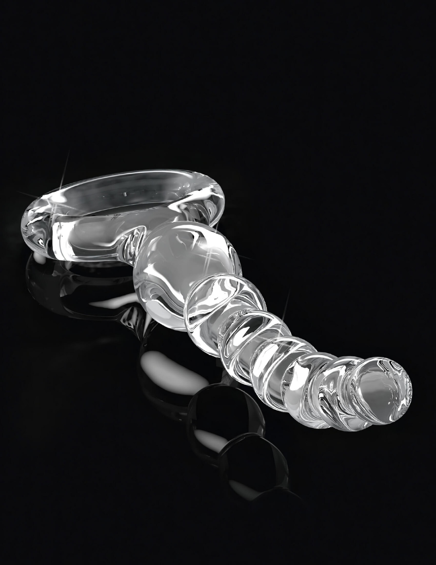 Elegáns, kézzel készített üvegdildó gömbös felszínnel , mely egyben dizájnelem és funkcionális kényeztető.