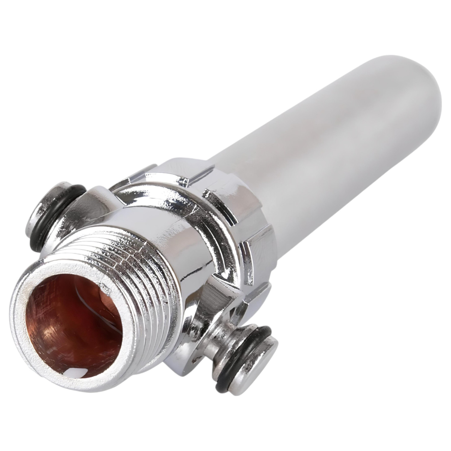 Acélból készült intim zuhanyfej, amely illeszkedik a zuhanycsőre, könnyen összeszerelhető és egyszerűen használható az intim területek tisztántartására.