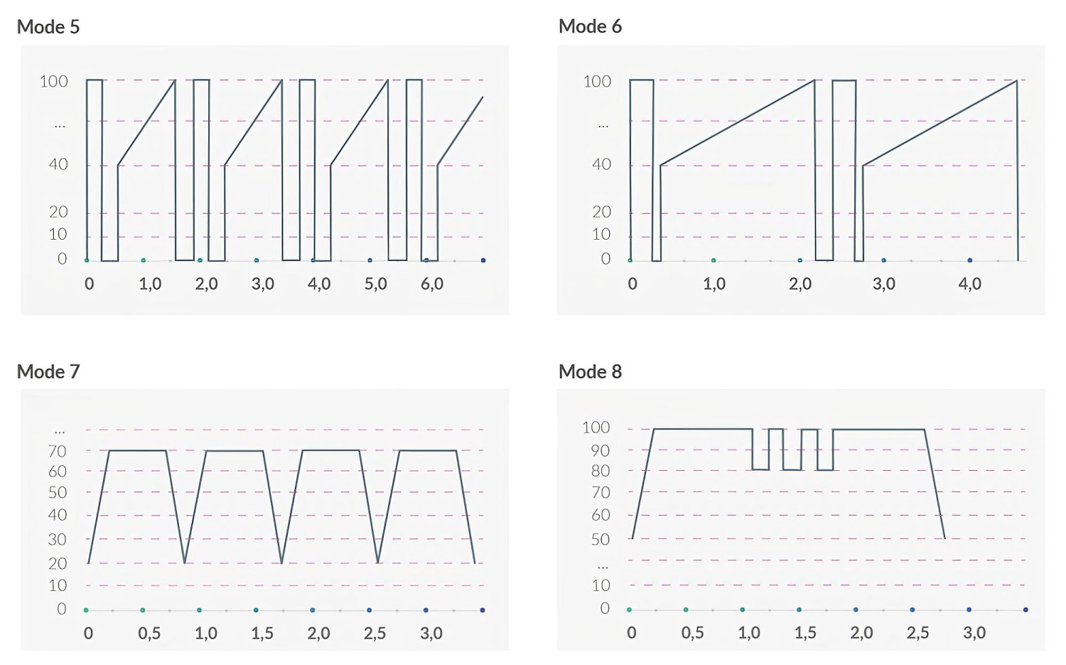 • Változatos programok: 8 vibrációs ritmus, 5 E-Stim program 10 erősségi fokozattal.