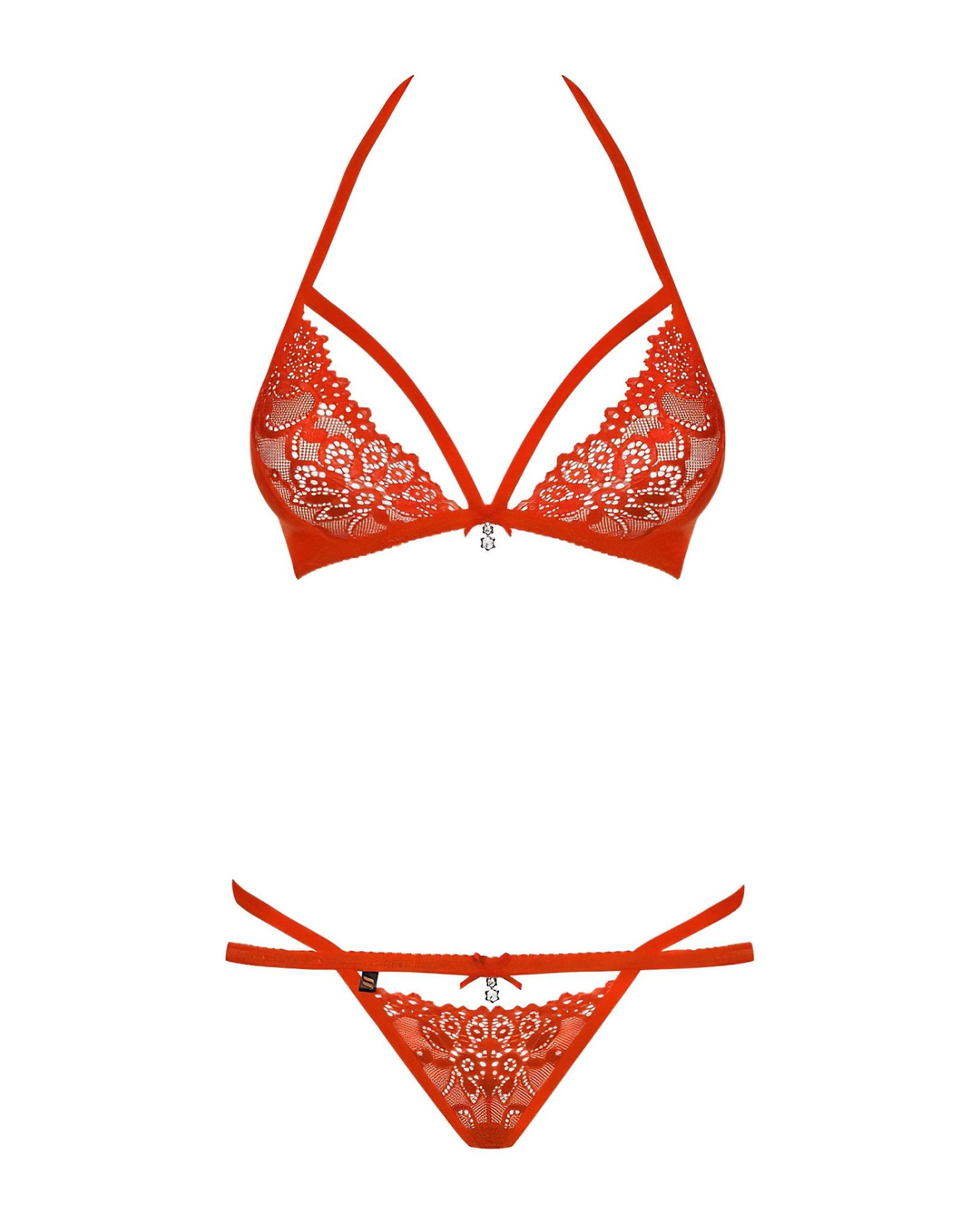 Obsessive 838-SET-3 - pántos csipke melltartó szett (piros)