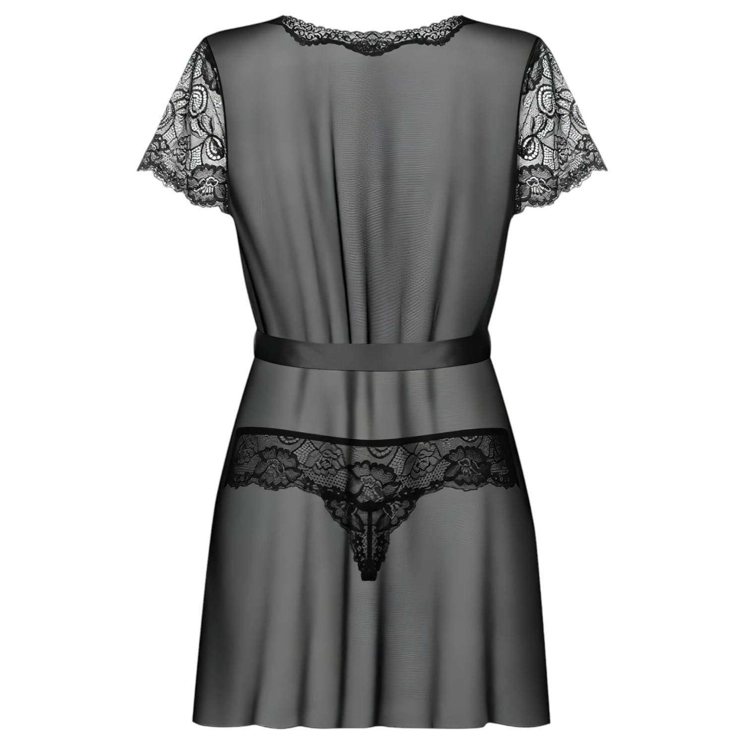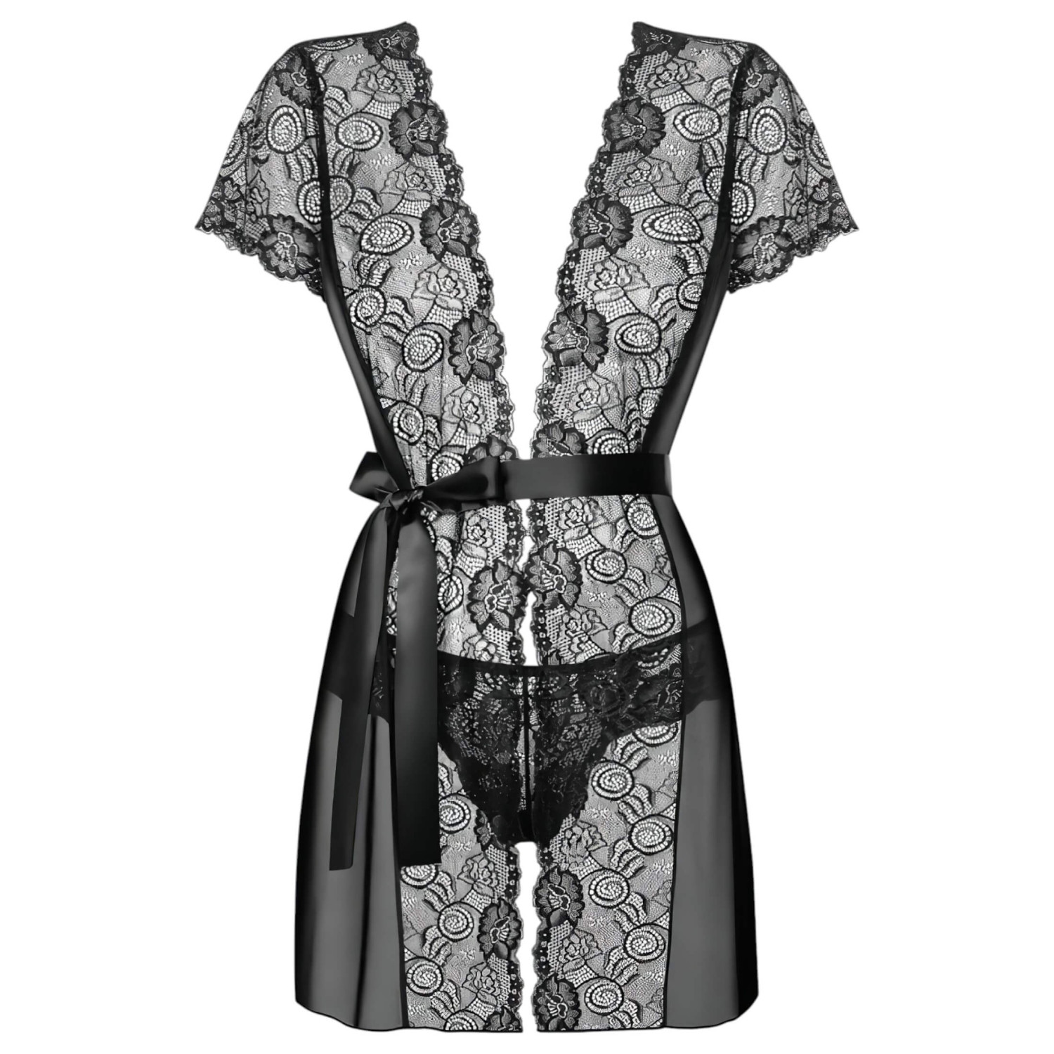 Obsessive Alluria - csipkés köntös és tanga (fekete)