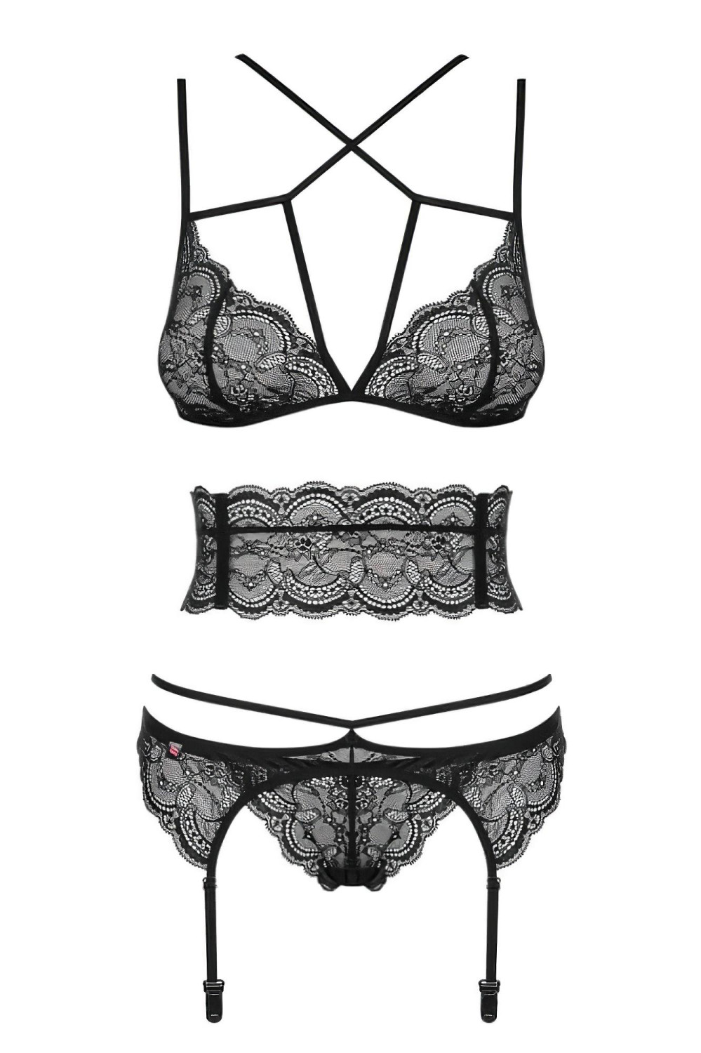 Obsessive Frivolla - pikáns csipke fehérnemű szett (fekete)