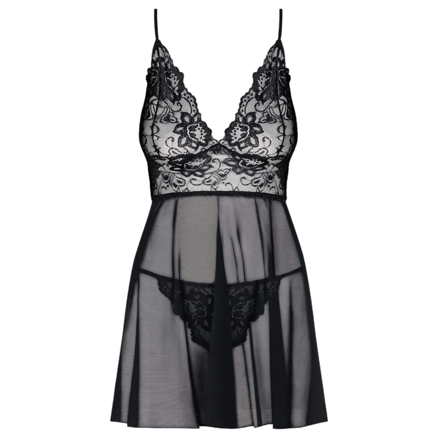 • 1 db fekete tüll babydoll hosszú fazonban, merevítés nélküli mellrésszel és csipke díszítéssel
