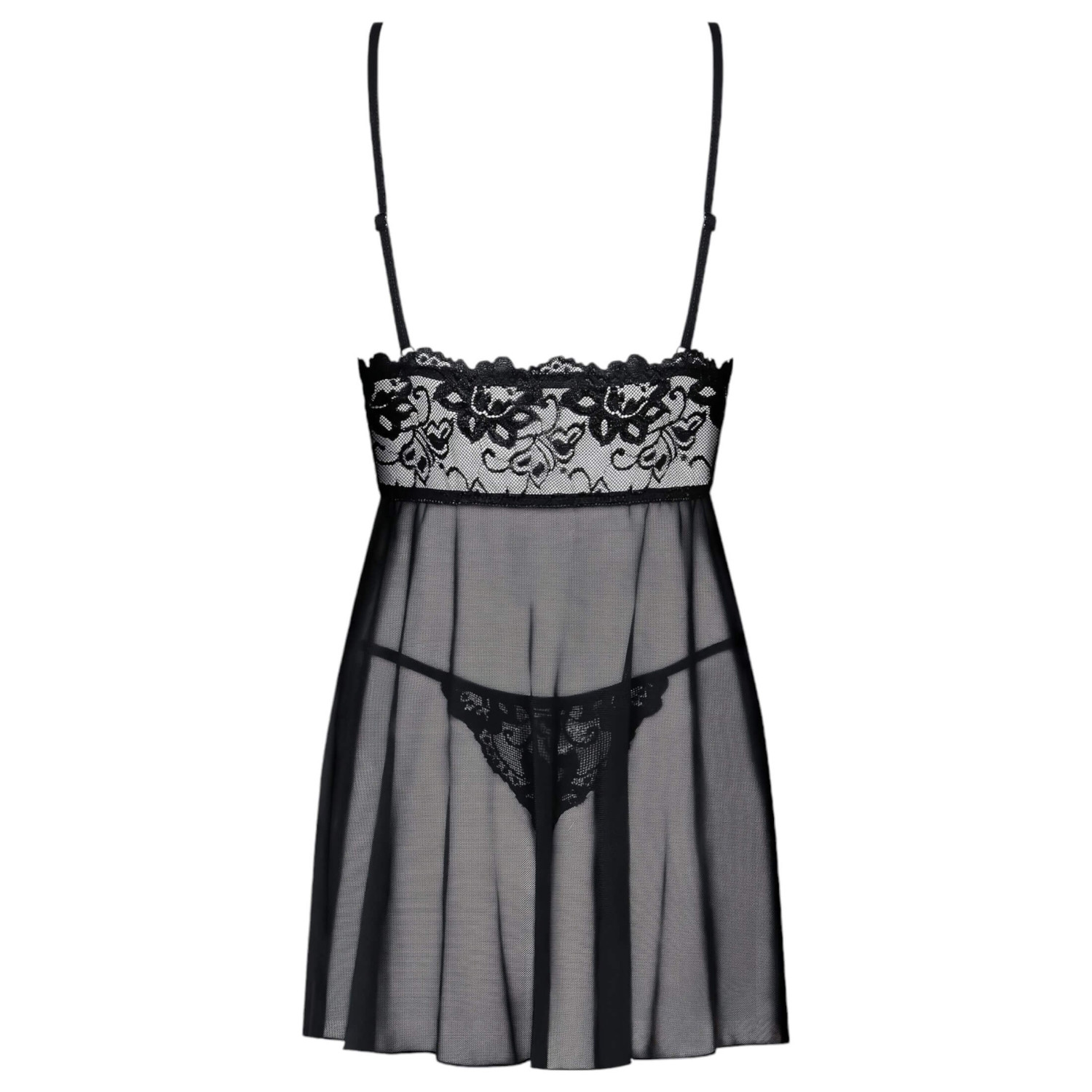 Vélemények Obsessive Idillia - lenge, csipkés hálóing és tanga (fekete)
