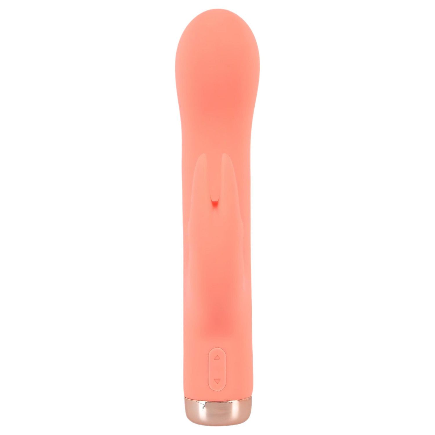 Kompakt méretű, kezdőknek is ideális, klitorisz karral ellátott G-pont vibrátor, hangsúlyos fejjel, mellyel könnyen eltalálhatod gyönyörpontodat, miközben az édes kis nyuszifülek kényeztetik a csiklód.
