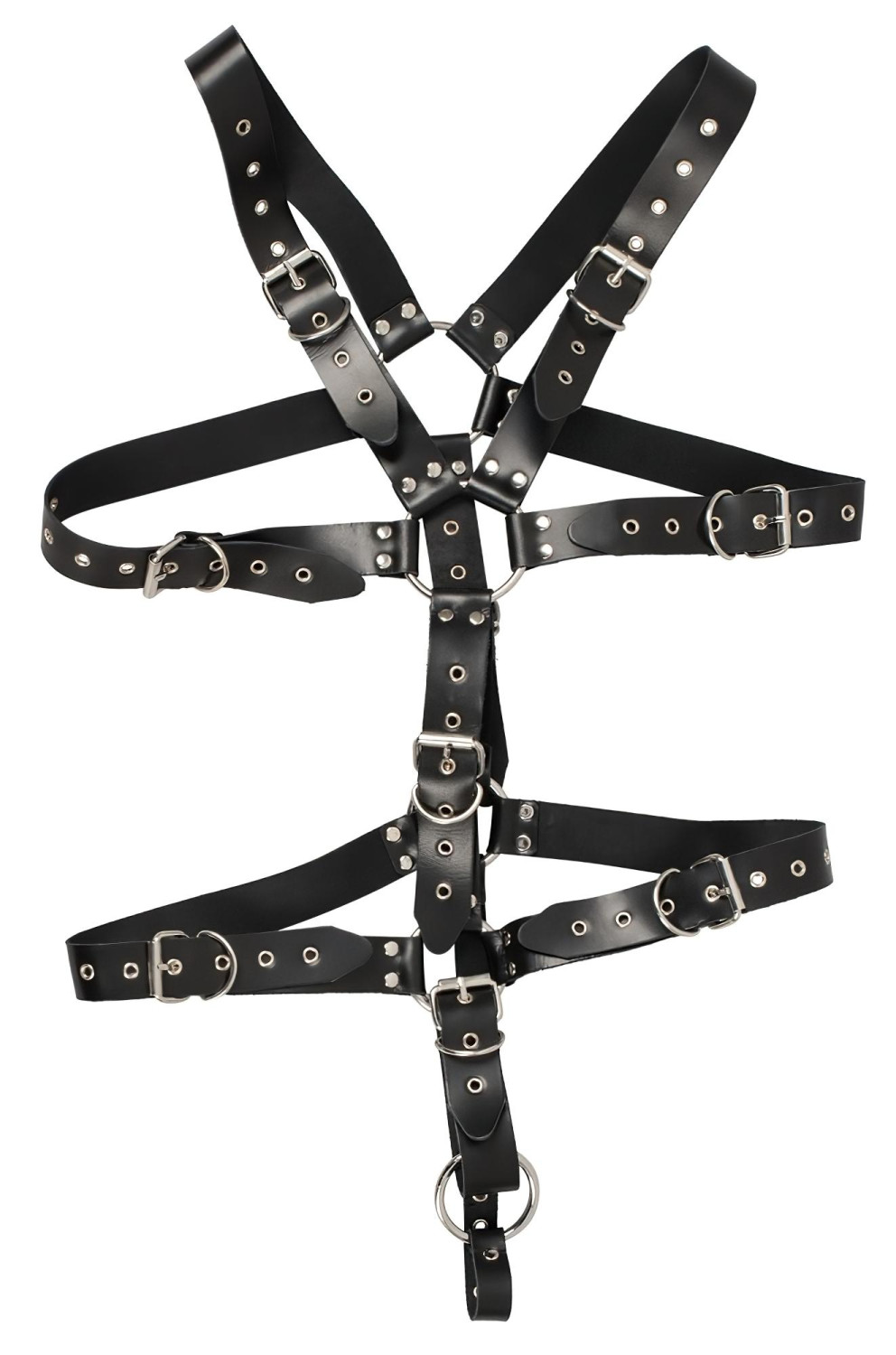 Fedezd fel a vad és erotikus BDSM élményeket ezzel a prémium bőrből készült férfi body-val, amely szegecsekkel és fém gyűrűkkel emeli a dominanciát!