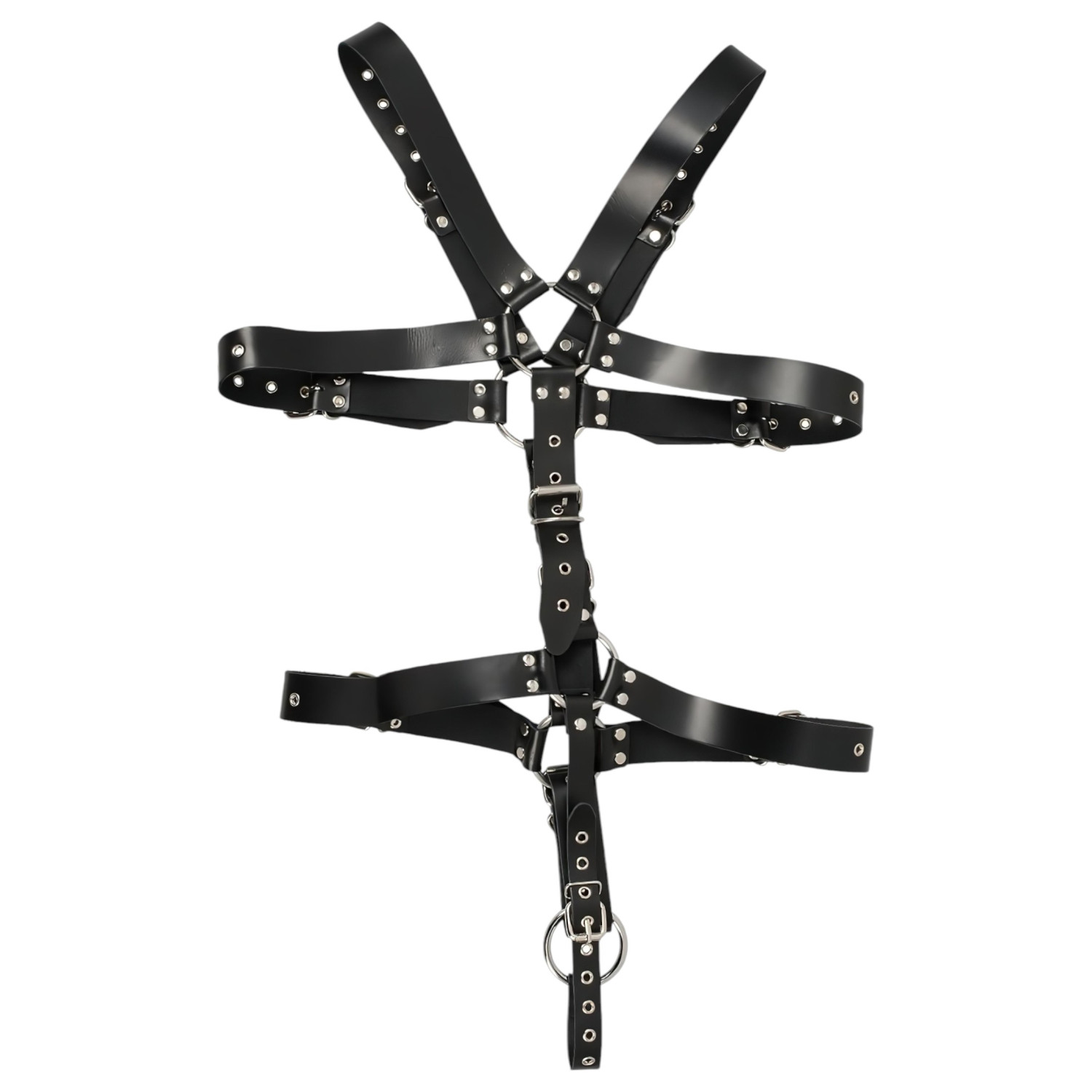 • 1 darab férfi body, szegecsekkel és fém gyűrűkkel, állítható pántokkal